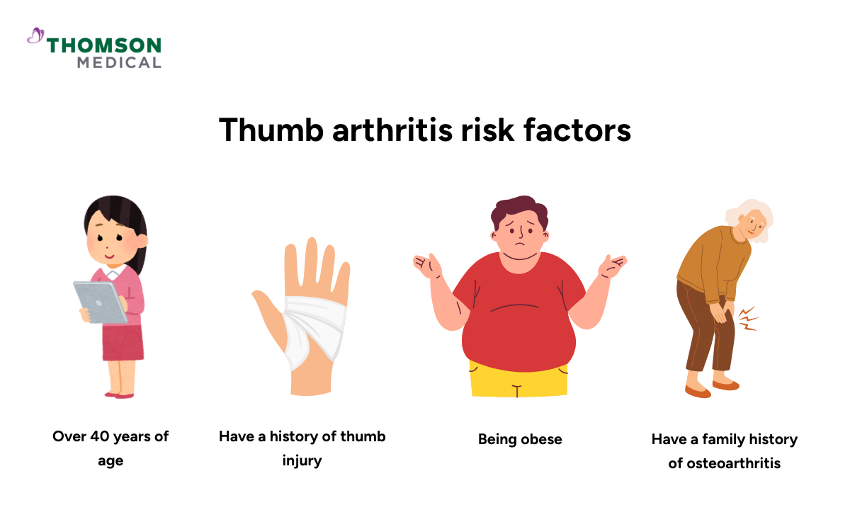 In addition to these symptoms, several risk factors can increase the likelihood of developing thumb joint arthritis, such as: